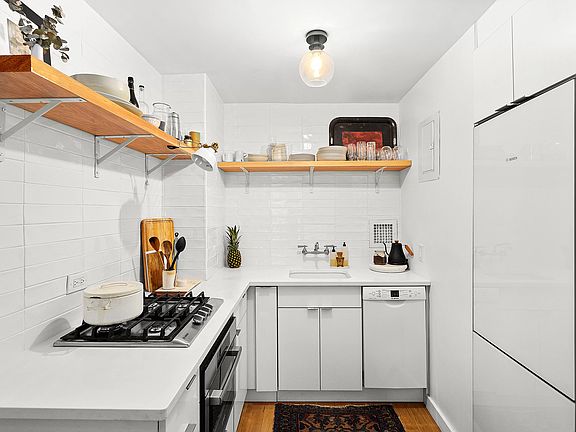 This treasure in the sky has been gut renovated from head to toe with a timeless, chic style that will delight you and your guests and just steps away from the magnificent Penthouse Garden. A rare opportunity to purchase a top-floor, designer studio in the heart of Gramercy Park neighborhood. With lots of light streaming through the brand new corner windows, you are sure to fall in love with the Scandinavian aesthetic of this studio home. From the light, wide-blank wooden floors throughout to the all-white tiled kitchen; featuring a suite of BOSCH appliances, open style, upper-shelving and ample storage space for pots and pans, pantry supplies and even a pull out spice rack. No detail has been overlooked. The living room space is generous in size and equally peaceful with ample room for your furnishings. The completely tiled, hotel-style bathroom is bright and welcoming with Duravit sink and toilet, oversized standing waterfall shower and a charming, vintage medicine cabinet as the perfect finishing touch. Pin drop quiet, ample closets and a separate foyer makes this studio apartment a dream come true. Gramercy East is a full-service cooperative with a 24-hour doorman, a live-in resident manager, a renovated central laundry room, bike storage, misc. storage, a planted roof garden and a garage. Pied a terres, co-purchasing and pets are allowed. Close to transportation, dining, nightlife, The East River Esplanade, markets, coffee shops, dog runs...and more! Only 20% down is required here. Showings by appointment.