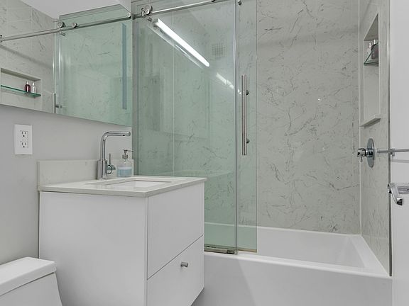 Elegantly renovated 2-bedroom apartment in heart of Gramercy! Residence #9E opens up to a bright living room with dual exposures as you enter the renovated home. The western exposure brightens the entire apartment with lots of natural light while the northern exposure beautifully showcases a view of Empire State Building and Second Avenue. Recently renovated, this home is sure to wow you with a brand new extended kitchen, bathroom and floors. As you enter, you will be met with tastefully selected custom kitchen cabinets with matching paneled Blomberg refrigerator, complementary Quartz countertops, matching backsplash and a suite of Thermador appliances including a gas range, a dishwasher and a vented hood. Added features include a garbage disposal and under the cabinet LED lighting. The bathroom is beautifully designed with chevron wall tiles from Italy, custom quartz vanity, glass sliding door, Kohler toilet and bathtub, and Grohe fixtures. Spacious king-sized master bedroom is outfitted with custom built closet. Originally a Junior 4 layout, second bedroom was converted to use as a nursery, guest room or a home office with its own heating and cooling unit. If you are searching for a bright renovated move-in ready home, #9E is a must see! Gramercy East is a luxury full-service coop located in prime section of Gramercy. This meticulously managed building offers amenities including 24-hour attended lobby, common roof deck with a beautiful garden and open city views, and a large laundry room. Onsite storage, bike room and garage are available with additional fee. Conveniently located in close proximity to restaurants, shops and transportation. Pied-a-terres, co-purchasing, limited subletting and gifting allowed. Up to 80% financing permitted. Pet friendly. * All Open Houses are by appointment only. *
