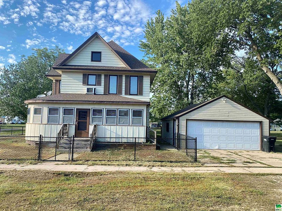 Hop in the car and drive to Anthon IA where you will find this majestic home with some of the original details still present. After entering the enclosed front porch, you will be greeted by the beautiful open stair case. Be sure to check out the closet under the stairs as well as the little area right off the landing of the steps. The main floor of this home offers a wonderful layout with modern updates and charming original features. With an updated kitchen, open dining area, and a living room with built-ins, you have a great canvas to work with for creating a comfortable and inviting living space. The main floor bathroom has a jetted tub and sits right off the back entry to the home. Main floor laundry with additional room to make a drop zone area for coats, boots or shoes or maybe an office space! Upstairs are 3 bedrooms. There's an additional room upstairs that could be used as you see fit. This flexible space offers a lot of possibilities. The half bath requires some fixing up. This home sits on a corner lot with the city park right across the street. The fenced front yard provides privacy and security. The garage has newer cement inside however the electric garage door is not operational. Walking distance to downtown Anthon where you will find the iconic Fire Side restaurant as well as other amenities. Library, meat store, post office, shopping, beauty salon, and even a medical clinic, all with in walking distance! Inspections welcome but selling in 'as is' condition. Potential buyers are encouraged to conduct their own inspections and assessments to determine the condition of the property.