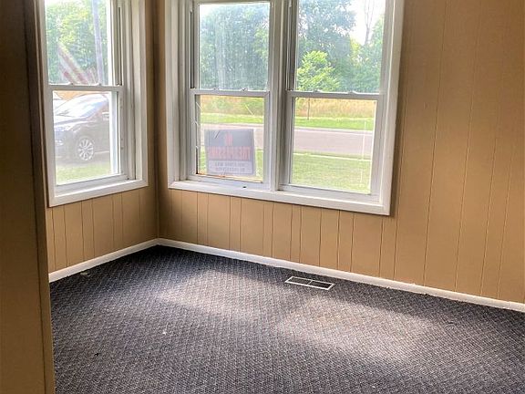 Look out the back door to see the edge of town, but look out the front to gaze on farmland and trees. This quaint bungalow sits on a newly paved, quiet street. Open the door to a large living room with lots of natural light and a gas fireplace for those cool evenings. One side opens to the dining room that connect to the galley-style kitchen. Conveniently located to the kitchen space is the utility room that opens to the covered garage and back door making those shopping bags easy to carry inside. On the opposite side of the living room lie the sleeping quarters with a bathroom separating the two. This house is light and airy thanks to new ceiling fans, replacement windows, laminate flooring, and fresh paint job.