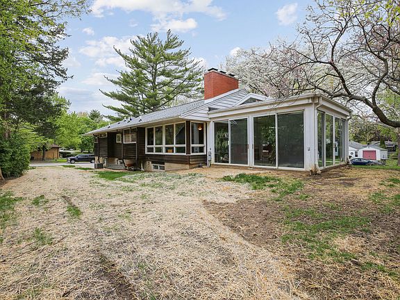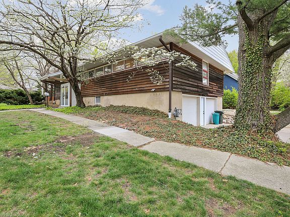 This remarkable mid-century raised ranch is situated on a large corner lot and boasts 3 bedrooms, 2 bathrooms, a 2-car garage, and an expansive 1,710 square feet of living space. The open concept living/dining room and kitchen are truly breathtaking, with floor-to-ceiling windows that allow an abundance of natural light to flood the space. Cozy up to the wood burning fireplace in the living room during chilly winter evenings or bask in the beauty of the sunroom which also features a fireplace. The kitchen is a chef's delight with granite countertops, stainless steel appliances, an island, and a wet bar with a wine cooler. The hallway leads to three bedrooms adorned with stunning parquet flooring. The primary suite has a private bathroom with dual sinks, granite countertops, and a walk-in shower. The basement is home to your laundry area and mechanicals, wonderful storage and is a great space for woodworking, crafts or whatever you may need and leads into the two car garage which is at street level. As an added bonus, a brand-new roof is being installed! Other updates include new sump pump, sanitary lateral and storm sewer in the last year. Don't let this exceptional opportunity slip away!