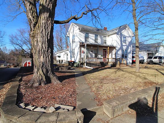 If you love the character of a historic home combined with modern updates, this one is sure to impress! Step inside to a stunning entryway featuring beautiful hardwood floors, parlor-style windowed doorways, and spacious rooms throughout. The expansive kitchen is perfect for gatherings, complemented by a traditional butler’s pantry for extra storage and charm. The main level offers two generously sized bedrooms and an updated master bath, while the upper level boasts three additional bedrooms and a renovated bathroom complete with a clawfoot tub, walk-in shower, and double sinks. Escape to the parlor room for family time or the large 23ft x 27ft great room. Enjoy the outdoors with a fenced backyard and a main-level back deck—perfect for entertaining! A 20' x 12' shed with electricity provides extra space for hobbies or storage. Relax on the covered front porch with a swing or fire up the grill on the side deck—ideal for outdoor gatherings. This home has been lovingly maintained and updated, including, 2020 New roof, gutters, refrigerator, oven/range; 2021 New washer/dryer; 2022: New kitchen island & top, redesigned dishwasher space; 2023: New furnace; 2024: New front porch steps, decking, and support beams; March 2025: Fresh paint in two bedrooms. With its blend of historic charm and modern conveniences, this home is a true gem. All appliances included but not warranted. Don’t miss your chance to own a piece of history with all the comforts of today!