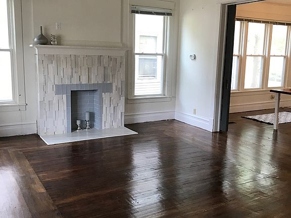 Step into the coolest kitchen in town. This completely remodeled large 1 bedroom has stainless steel appliances, 5-burner gas stove, dishwasher, farm sink, geometric tile backsplash, new cabinets, gold fixtures, and a custom island that seats six. Tons of character: original hardwood floors have been refinished, pocket doors, and barn door. Half bath has all new fixtures and tile, and the remodeled master bathroom has his/her vanities, walk-in closet, new toilets, and large custom tiled shower with glass doors. And get this: the master bath has HEATED tile floors. Large bedroom and spacious, open concept living room and modern fireplace. This unit has a private back deck and driveway parking. Laundry access in the basement; washer/dryer provided. Location is perfect: just a couple walking blocks east of downtown Bloomington near shops, bars, and entertainment. Utilities not included. Pets allowed.