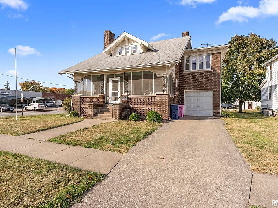Welcome to this charming craftsman gem on a corner lot, just steps from Aledo's blossoming downtown! This beautiful brick home greets you with a large screened-in front porch complete with a cozy porch swing, perfect for relaxing afternoons. Step inside to find stunning wood floors, an inviting brick fireplace, and classic double-hinge French doors leading to the staircase. The spacious living room flows into a dining area, showcasing beautiful woodwork and built-ins throughout. The kitchen opens to a handy back porch, ideal for extra storage. Upstairs, you'll find a large bathroom, three bedrooms (2) with oversized closet space and an office space that could also serve as a 4th non-conforming bedroom. With a main-floor half bath and an attached 1-car garage, this home offers endless charm and a prime location.1 photo is virtually staged. Listing agent is related to the seller
