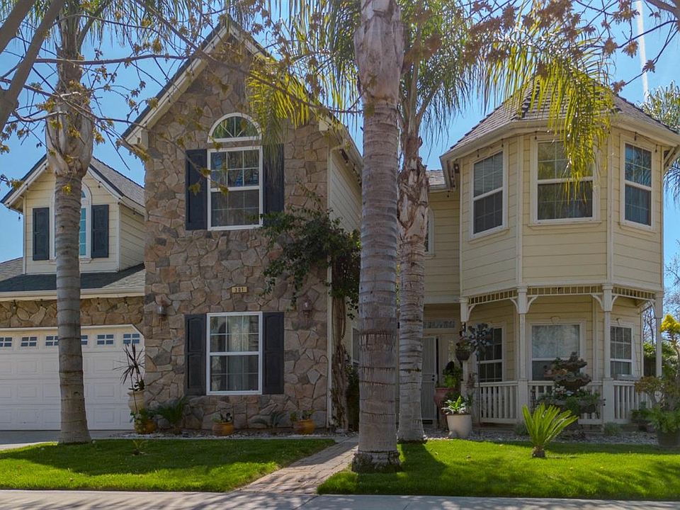 Fall in love with this charming 5 bed, 3 bath, 2,897 sq ft two-story home! The spacious living room welcomes you with vaulted ceilings, a cozy fireplace, and stylish new ceramic wood-look flooring. The remodeled kitchen features a huge island, open bar counter, and ample space for cooking and entertaining. Host guests in the formal dining room, perfect for special gatherings. The stunning master suite offers vaulted ceilings, a sitting area or office nook, large walk-in closet, and a spa-like bath with dual sinks, soaking tub, and separate shower. two other convenient bedroom sits off the main entry, with the master just beyond the living room. Upstairs includes a generous loft, two bedrooms, and a full bath with dual sinks and a tub/shower combo. Step into a backyard built for entertaining complete with a massive covered patio, built-in bar, gazebo, two sheds, stamped concrete, RV parking, and a stylish side gate. Don't miss out schedule your private showing today!