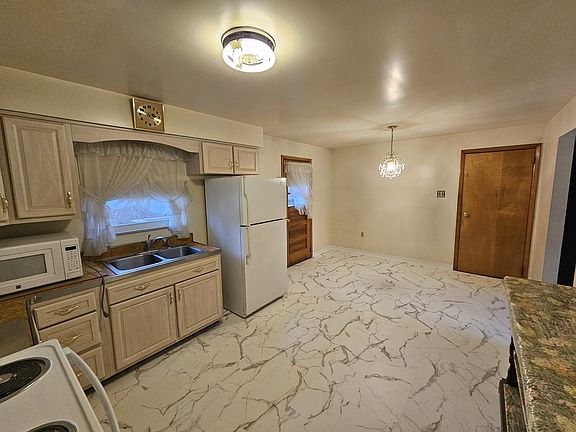 Three bedrooms, living room, eat-in-kitchen, rear deck, and basement.