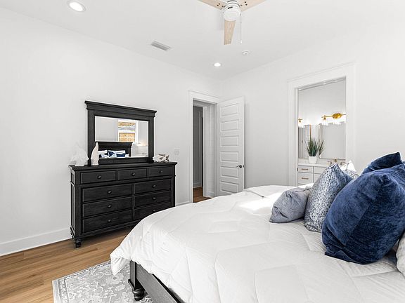 With dedicated beach access, no HOA, private heated pool and spacious backyard, you will not want to miss this stunning new construction home in Gulf Shore Manor. This newly construction, 4B/4.5B with generously sized custom bunk room offers one of the best locations on 30A. With rental projections of $190K plus this makes a compelling investment opportunity with so much room to grow. Located a short walk or golf cart ride to FIVE deeded beach access points, this quintessential beach house is located in Gulf Shore Manor in the heart of Seagrove Beach. Offering the ultimate in coastal convenience and sophisticated charm, this fully-furnished home features over 2,636 square feet of thoughtfully curated and open concept living space. On the first floor you'll find one of two master ensuite bedrooms along with powder bath and fully equipped chef's kitchen perfect for entertaining large groups or hosting cozy family gatherings. The modern kitchen with stunning backsplash and stunning Cambria quartz island comes equipped with ice maker and additional pantry storage. The second master ensuite, two additional bedrooms (each with ensuite access), laundry and custom four bed-bunk room complete the second floor. An expansive outdoor entertaining area is a hallmark of this one-of-a-kind custom home. A perfect home for outdoor entertaining, this home is a great outdoor entertaining retreat to dine al fresco, enjoy evenings in the private heated pool or playing endless games of cornhole and backyard games. Thoughtful design elements maximize every square inch, including a charming pet or kids lounging nook under the stately staircase.