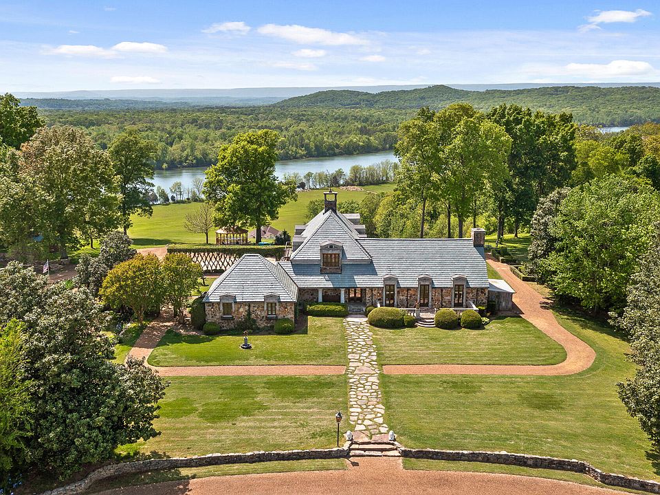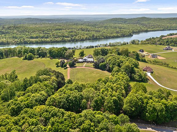 This exquisite Tennessee estate is a rare find, offering unparalleled quality, comfort, and attention to detail in a truly breathtaking setting. After 17 wonderful years overseeing this extraordinary property, the seller is downsizing. Don't miss the opportunity to make this your new home! Nestled amidst the serene beauty of the Tennessee countryside on 10.44 acres, this stunning estate seamlessly blends rustic charm with timeless elegance. With captivating views of the Tennessee River, the Cumberland Plateau, and rolling meadows, this property offers a picturesque setting that is both tranquil and inspiring. Upon entering the residence, a grand living area welcomes you with 24' cathedral ceilings, classic exposed timber beams, and a magnificent custom wrought iron chandelier over 5 feet in diameter. The majestic fireplace harmonizes with elegant design elements, creating a warm and inviting atmosphere. The estate is a testament to quality and attention to detail. The kitchen boasts a matching pair of SubZero refrigerator and freezer (72''h X 36''w), a JennAir black floating glass door side-by-side refrigerator/freezer, a bonus top-loading garage freezer, dual KitchenAid dishwashers with door panels matching the cabinets, an under-the-counter Haier wine cooler, a Samsung microwave, a Jenn-Air oven, and a Jenn-Air drop-in electric range. Soft-close drawers add an extra touch of convenience and quality. The master bathroom features luxurious travertine heated tiles, adding to the home's comfort and elegance. Flooring throughout the residence includes brick, solid oak hardwood, carpet, and travertine, providing a blend of durability and style. In the dining room, an ornate Tiffany-style chandelier softly illuminates the rich wood trim and intricately carved solid oak crown moulding, adding a touch of grandeur to every meal. The estate's outdoor living space is equally impressive, with 1,294 square feet of patio space including a gazebo, meticulously landscaped grounds, vibrant gardens, and neatly trimmed hedges. A succession of blooming flowers, including roses, hardy hibiscus, iris, lilies, rose of Sharon, asters, hydrangea, lavender, pink muhly grass, magnolia, and crepe myrtle, adds splashes of color from spring through fall. The guest suite is a retreat of its own, featuring two inviting bedrooms, a living room with a wet bar including a solid brass sink and ornate faucets, an under-the-counter fridge, and a full bathroom. This space offers privacy and comfort for your guests, making them feel right at home. The property is equipped with a 12-zone well water sprinkler system, which ensures efficient water usage and keeps the lush landscape vibrant. Additional structures include two detached tool sheds, two A/C housings, and a riding mower garage, providing ample space for storage and maintenance. The home features double-paned oak wood frame windows, a Kinetico water softening system, and two custom-made solid oak carved vanities. The fireplaces are marble in the bedroom and living room and brick in the kitchen/dining room. Spa features include a Kohler bath and a one-of-a-kind Mr. Steam flagstone/teak wood steam shower, highlighting the estate's commitment to relaxation.