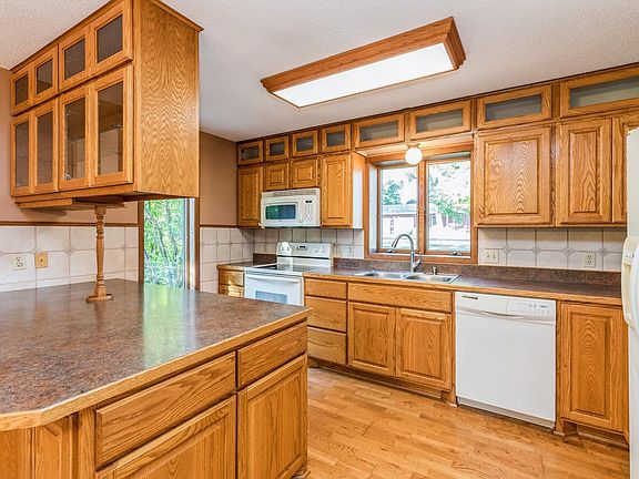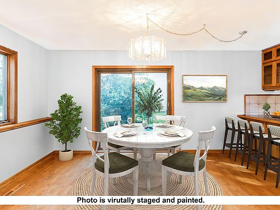 Best value on the market in Cannon Falls with over 3000 SF! Many updates including New Roof 2022, New Siding 2022 & New Laminate Flooring 2022. Use the virtually painted photos to envision the transformation! Large front foyer leads to sun-filled open floor plan with hardwood floors. Kitchen features custom oak cabinetry & easy access to patio for outdoor entertaining made easy. Oversized family room with cozy brick gas fireplace & French doors leading to a 2nd huge patio with view of mature trees. 2 staircases leading to the upper level. Kids will love making their way up the custom, solid oak spiral staircase. The owner’s suite features a private bath & large walk-in closet. Option to make 6th bedroom a spacious laundry room. Exterior features Heated Garage, In-Ground Sprinkler System. 1st time home has been available on the market.