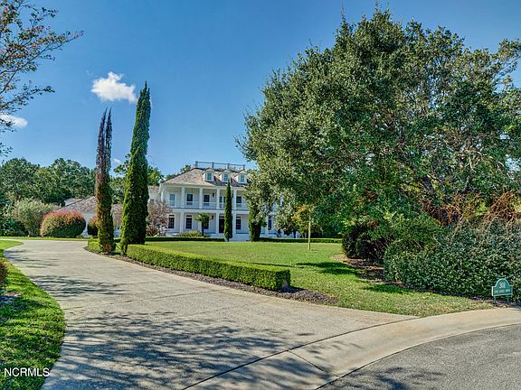 This Stunning Estate Home, located in the coveted Highland Ridge Area of Landfall, is situated atop a massive, 1.6 Acre Double Lot at the foot of Fair Lakes Drive on a cul-de-sac. Accented by a large circular drive with mature landscaping, the scene as you approach this stately home, with it's Shake Roof, Double Front Covered Porches, Dormers, and Widows Watch, is absolutely breathtaking. NOTE: The homes first floor hardwood flooring was damaged as a result of blowing rain to crawl space during Florence & other updating & repairs needed. Consider adding beautiful wide plank flooring & your desired updates to modernize and restore this home to a fresh version of it's original grandeur. A large foyer with towering ceilings and twin spiraling staircases lead to circular railing throughout the entrance. This magnificent, well built home, loaded with features, includes four very large Guest rooms, four and one half baths, an additional (fifth)bedroom situated over the garage with private rear entrance and ensuite bath, private Dining Room, Large kitchen with Island, Butler's Pantry, Spacious Breakfast Area, Living Room, Family Room, Office, and Laundry Room. At the top of the spiraled staircase you'll find a huge Master Suite with large en-suite Bath, his and hers walk in closets with custom cabinetry, an elevated Soaking Tub, and Shower. There are two large guest rooms on the North side of the home with individual walk in closets and shared bath. On the South side there is another large Guest Room with walk-in closet and en-suite full bath. The third floor features a near 750 SF Media and Entertainment Room, currently used a Theatre Room and has Pool Table, Ping Pong Table and pull down stairs to access the Widow's Watch on the Roof Top with incredible views. From the 4th Level.