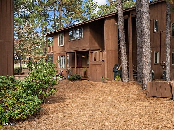 Nestled within the beauty and peace of Southern Pines, this ground floor, 2 bedroom, 2 full bath home awaits you! Enjoy amazing golf views of 18th fairway and peek at 10th tee from both the private screened porch, and the primary bedroom! Offering a nice size laundry room, plethora of indoor closet space and even outside private doored storage! LVP flooring throughout! There are even Bluetooth speaker exhaust fan/lights in both bathrooms! Cozy and quiet, the perfect neighborhood to call home! Inviting opportunity for a first-time homeowner, or a second home escape! Located conveniently off of Route 1, half hour commute to Fort Liberty and Sanford, hour drive to Raleigh and minutes to Pinehurst and Aberdeen! Seller is offering a $3000 credit towards new appliances, with an acceptable offer!!!
