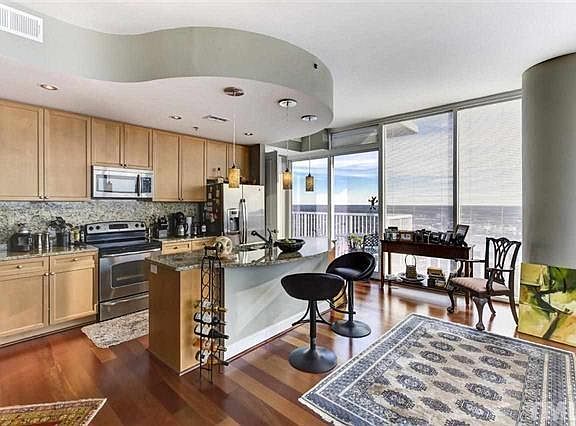 1,588 SF corner unit available January 2025. The unit sits on the 24th floor and overlooks Red Hat Amphitheater. INCREDIBLE SUNSETS!! Hardwood floors throughout with beautiful natural light. Granite counter tops, stainless steel appliances and modern light fixtures give the space a sleek feel. Washer & dryer included. Pets allowed with a deposit. 2 covered parking spaces, 1 storage unit, trash, gym and pool access included in rental rate. Tenant responsible for water, electric, and WIFI.