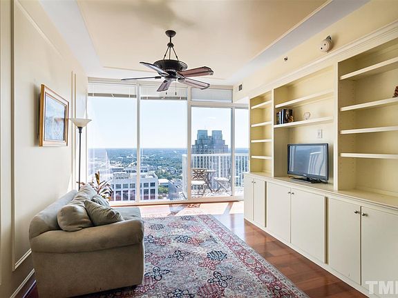 Back on the market! Live high above the heart of downtown Raleigh! 1 bed, 1 bath condo on the 31st floor of the PNC Plaza. New bedroom carpet, built-in cabinets in Living Room, WIC, and bathroom. Bonus nook in bedroom. Granite counter top kitchen island and stainless steel appliances. Coffered walls and ceiling w/ molding. This place has it all -pool, clubhouse, fitness room, 24 hr security, gas grill, bike storage plus temp-controlled storage cube on premises. Parking for one car in secure garage.