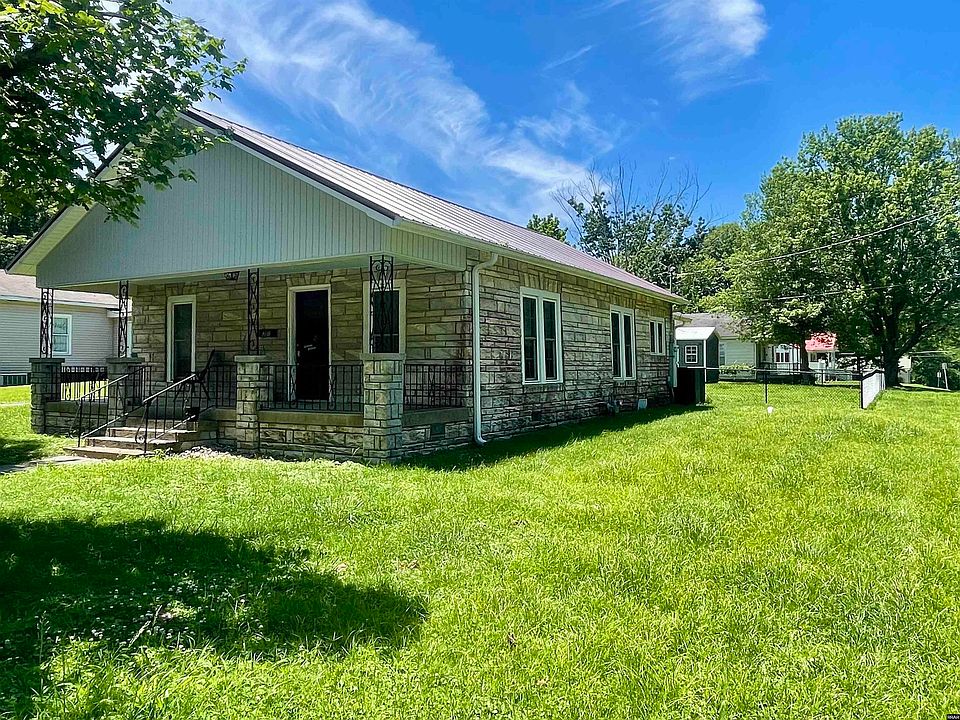 Check out this charming stone and vinyl home complete with all appliances, a fenced-in yard, and a storage shed. Featuring newer windows and roof, as well as an updated kitchen, this gem is situated in a great location. Information deemed reliable but not guaranteed.