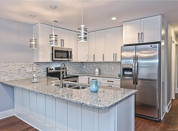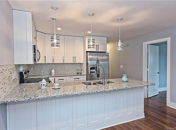 Beautifully-remodeled charmer in Cramerton, so close to Charlotte but in a relaxed country-like atmosphere! Includes TWO lots and it is eligible for a USDA $0 down loan if you qualify! 2 bedrooms, including a master, and 2 FULL baths, plus an extra room, which can be used as family room, office, kids playroom, anything you like. Stunning kitchen w/ new 42-inch-high slow-close cabinets, granite counter tops, and all brand-new stainless appliances, including a refrigerator! New gorgeous solid bamboo flooring throughout, except for beautiful tile in both bathrooms' walls and floors. House sits on one lot, but the lot to the left of it will also be yours! That gives you lots of additional room for expansion or to build a garage, workshop, large playground, etc, in the future.