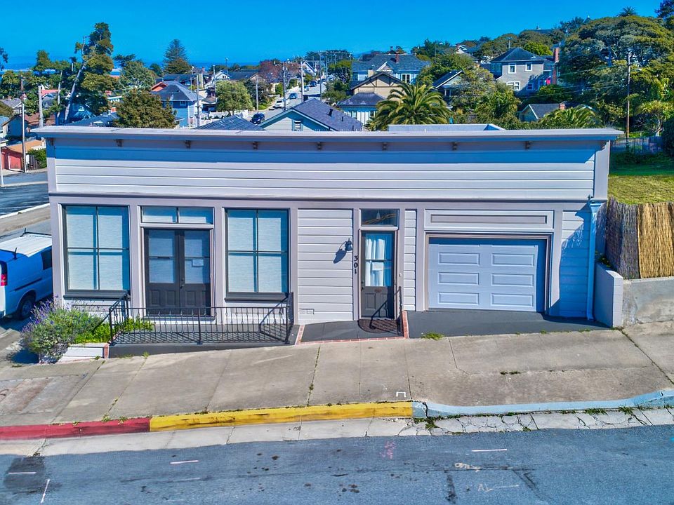 Remodeled live/work free-standing, corner property. 2016 Pacific Grove Heritage Society Restoration Award. Amenities include new wood window frames, historic exterior color palette, very high ceilings, a one-car garage, and patio off the bedroom. The living spaces comprises 75% of the building and offers a kitchen, large living room with bay views, bedroom, and bath. Sited just steps to the charming downtown restaurants, bakeries, coffee shops, movie theater, grocery store, and shops. A few blocks further down to Monterey Bay, this opportunity is one-of-a-kind.