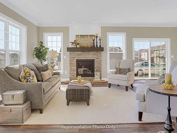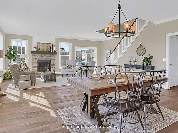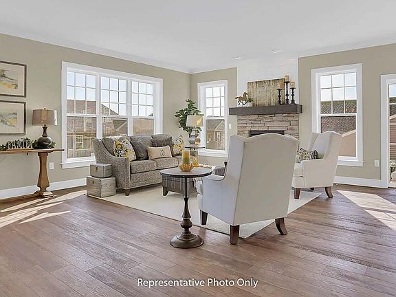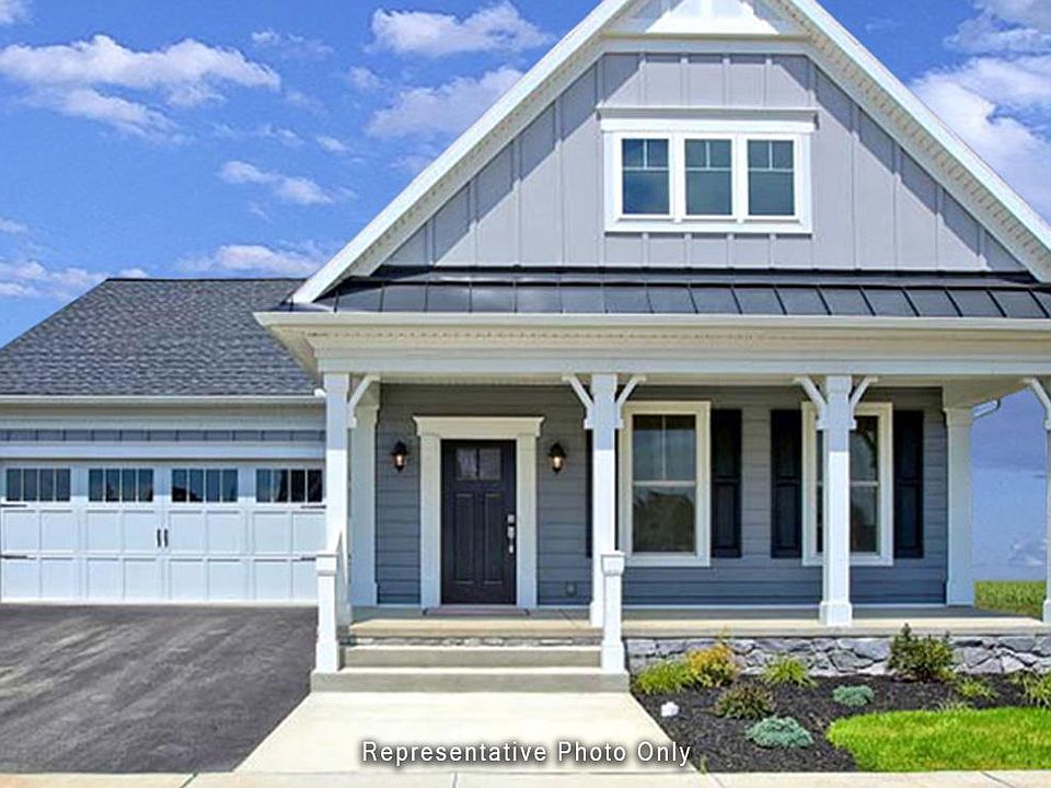 UNDER CONSTRUCTION: This charming 1-story home with a welcoming front porch includes a 2-car garage and an unfinished bonus room on the 2nd level. The garage opens to a mudroom with built-in lockers and entry to the laundry room and a pocket office. Stylish vinyl plank flooring flows throughout the main living areas. The open kitchen, dining and living room share a cathedral ceiling. The kitchen is well-appointed with stainless steel appliances, quartz countertops with tile backsplash, and a center island. The living room, warmed by a fireplace with stone surround, offers access to the rear patio. A hall off the main area leads to the owner’s suite that includes an expansive closet and private bathroom with double bowl vanity and tile shower. To the front of the home is an additional bedroom and full bathroom.