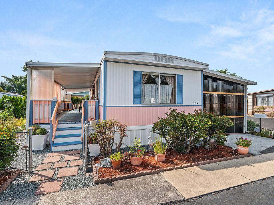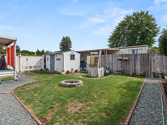 This home has so many updates and offers you community like no other! This split floorplan offers you a master suite on one end and either a second bedroom or cozy den on the other side of the home. This home has been lovingly renovated in 2017- 2019, but truly the renovations haven't stopped. New furnace, insulation, electrical, plumbing, lighting, interior and exterior paint, laminate plank flooring, a full front bath, and full kitchen remodel. The enclosed carport is nearly as equivalent as a single car garage, ample parking and plenty of shop and storage space! RV electrical and water hookups, trailer/ small boat parking too. Enjoy your beautiful yard with lush grass, gated garden with raised beds, and a small ''she shed'' for enjoyment or storage. Space rent is $666 monthly and includes a pool, gym, clubhouse, potlucks, trash and sewer. Situated well in the park and in the quaint town of Central Point, you have medical, restaurant, shopping, and airport access.
