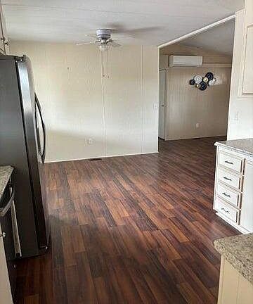 Discover this charming 1977 manufactured home located in a tranquil 55+ community. With 1,056 sqft. of living space, it offers 3 bedrooms and two full bathrooms. This home boasts new flooring, carpet and exterior paint, ensuring a fresh & modern feel. Situated on a corner lot with no neighbors behind you for privacy. The community is beautifully landscaped with great curb appeal. The rent space is $636 per month and HOA approval for the park is required. Space rent includes access to a clubhouse, perfect for social activities & gatherings. This home features a cooktop, hot water heater recirculating pump, microwave, refrigerator and electric heating/cooling with heat pump.