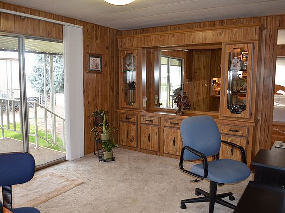 This is home has been well cared for with energy efficient double pane windows,aluminum room and updated plumbing.This home has lots of storage space and large closets ,comes with stove ,dishwasher and refrigerator .This home also has a a outside storage building that is insulated and has electricity all this located in a 5 star 55 + park