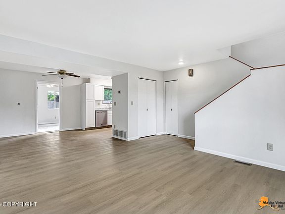 Beautifully remodeled zero lot line. All new flooring, paint, and stainless steel appliances! Located in North East Anchorage a very easy distance to JBER, and the Tikahtnu shopping center. Great for commuting to base! This 2 bedroom 1 bath home has a fully fenced yard with shed. Located on a corner lot in a cul-de-sac!