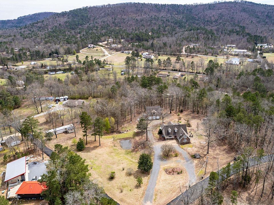 This Unique Property is located in the Fountain Lake Area and situated on approximately 3.6 Acres! The Main Residence is 3454sf and Offers 2 Bedrooms, 2.5 Baths w/ a Loft Area that was used as a 3rd Bedroom. The Main Level features 2 Living Areas, the Front Living Area has a Gorgeous Stone Fireplace and the Back Living Area features Beautiful Mountain Views! Great Kitchen with Jenn-Air Gas Cooktop, Wall Oven, Full-Size Refrigerator and Freezer, Built-In Ice Maker and Beverage Fridge. The Primary Bedroom EnSuite has a Custom Tile Shower, Jetted Tub and Tons of Built-Ins. Flagstone Patio off the Primary Bedroom & Large Deck off the 2nd Living Area. The 3 Car Detached Garage has a 1/2 Bath on the Ground Level that services the Shop. This was built in 2003 and features a 962sf Apartment. The Upstairs Apartment has an Open Living/Dining/Kitchen. It Offers One Bedroom and Full Bath, plus a Loft Area. There is also a Deck off the Left Side that Overlooks the Property.. This property includes 6 Parcels. It has a Seasonal Pond. Very Private Setting!