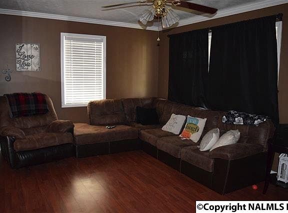 - LIVING ROOM DESC: Crown Mold, Laminate Floor, Ceiling Fan