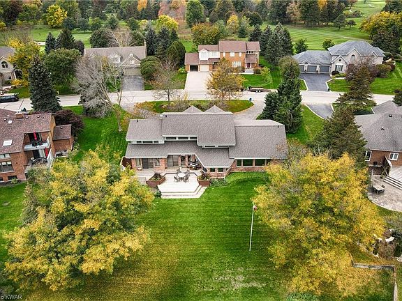 A HOME PERFECT FOR ENTERTAINING In Sought-After Private Enclave Of Executive Homes Surrounded By The Grand River & Conestoga Golf Course!10 Minutes To Waterloo, St. Jacobs, Grey Silo Golf Course, Extensive Trail System, Rim Park & Conestoga Mall. Nestled on just shy of 1/2 acre lot with spectacular views . Boasting an expansive resort style curved driveway with parking for 12 cars & a covered canopied porch . Over 5000 sq ft of living space. This Stunning 2800 sq ft custom built bungalow comes with fully finished lower level offering : games room with pool table and shuffleboard, large theatre room, sauna, full size pub style bar, work-out room, full bath. Contemporary design built with highest quality material and workmanship. Wide welcoming foyer opens to raised living room with 12 ft cathedral ceiling complimented with 8 x 10 ft picture window. Chef's gourmet kitchen with wall to wall cabinets, granite counters and Viking PROFESSIONAL series stainless steel appliances w/natural gas range, a Butler's Pantry with a 2nd dishwasher, deep sink and convenient appliance storage shelves. 2 walkouts from family to a party sized deck & patio offering endless out-door entertaining options ,plus a privacy screened area perfect for your future hot tub. Over-sized 26 x 23 ft garage with stairs directly to the basement . TRULY A RARE OPPURTUNITY . 2021-10-27