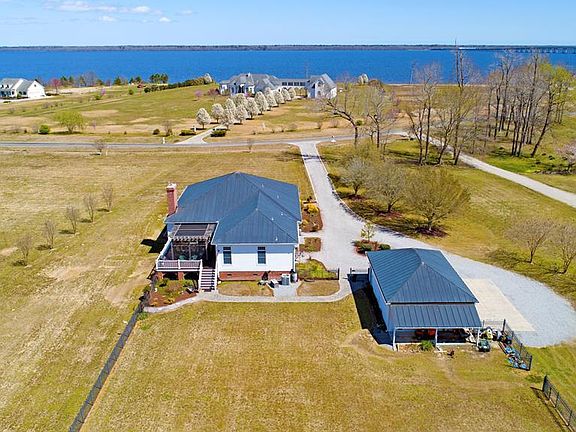 Gorgeous custom home on 2.5 acre lot with views of Chowan River. Situated just 7 miles from Edenton in Black Rock Farms it offers convenience & serenity with tons of wildlife. Amazing open floor plan with 10ft ceilings, custom cabinets, granite counters, deluxe appliances, recessed lighting, granite bar, spacious bedrooms, & hardwood & ceramic tile throughout! Outside is a great wrap around porch with water views, black aluminum fence, back deck with screened-in pergola, & huge 3 car detached garage! Copper roof & Hardiplank siding for easy/low maintenance. NO FLOOD!One of a kind & MUST SEE!