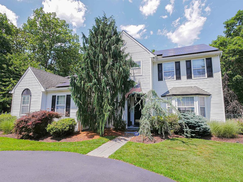 ***NEW LISTING!!*** "WILL NOT LAST LONG!!" Built as the "ORIGINAL MODEL HOME" you will find this move in ready BEAUTIFUL 2558 sq ft 4 Bedroom 3 1/2 bath 2 Story Colonial situated on just over a HALF ACRE LOT and backing up to the woods for added privacy! CUSTOM FEATURES include formal Living & Dining Rooms, tiled eat in kitchen with CETER ISLAND, GRANITE COUNTER TOPS & built in desk feature flowing into the LARGE SUNKEN FAMILY ROOM with SOARING VAULTED CEILINGS and GAS FIREPLACE with slider leading to HUGE REAR DECK overlooking the SPARKLING INVITING INGROUND POOL. (1st floor bonus room which could be converted back into the 2 car garage) primary MASTER SUITE complete with VAULTED CEILINGS and PRIVATE tiled bath with JACUZZI TUB. Other amenities include FULL PARTIALLY FINISHED BASEMENT with a FULL BATH for added possibilities, 2 ZONE GAS HEAT and CENTRAL AIR, SOLAR panels to help keep those energy costs in check, blacktop area in backyard perfect to shoot some hoops or GATHER BY THE FIRE PIT!! Huge CIRCULAR BLACKTOP DRIVEWAY!! THIS MAKES THE PERFECT FAMILY HOME!!