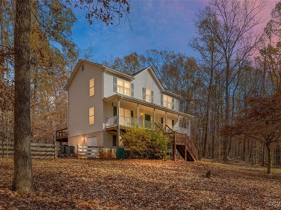 Discover the perfect blend of comfort and nature in this delightful 3-bedroom, 2.5-bath home offering 1,824 square feet of living space. Nestled on a private 2.52-acre lot, this home invites you to relax and enjoy the beauty of the surrounding woodlands from your spacious, stylish, multi-level Trex deck or the cozy front porch complete with a swing. Inside, the open floor plan includes a dining area, living room, office, and a kitchen featuring an island, large pantry, and mudroom—all accented by beautiful wood floors. The home boasts Andersen doors and windows, Trane dual-zone heating and cooling (installed approximately 5 years ago), and a newer hot water heater. The primary bedroom is a true retreat, featuring a luxurious en-suite bath with an oversized tiled shower and seat, dual-sink vanity, and a jetted tub. Additional highlights include a full, unfinished walkout basement with windows and a woodstove, providing endless possibilities for customization. This home offers modern comfort in a serene natural setting—schedule your visit today!