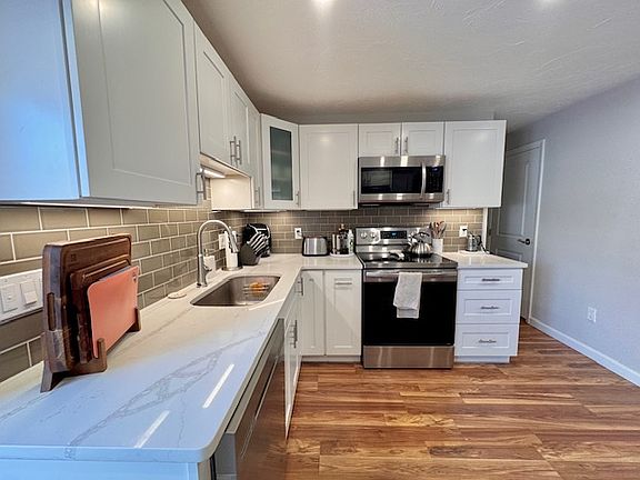 Beautiful Townhouse style living with stunning condo quality finishes. This home features an open floor plan with a fully renovated living room, kitchen and large island. The home gets beautiful natural light from all directions along with Vaulted 2nd floor ceilings and fantastic closet space make the upstairs space a lovely Single Family like feel. Other features include parking, laundry in unit, central air and deck off of the kitchen. Excellent basement storage to top it off. No smoking allowed.