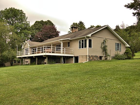 Lovingly maintained, well-proportioned ranch home beautifully situated near Fairview Lake & Lake Wallenpaupack. On just over 2 acres, this spacious home offers so much, including a well-thought-out design, large rooms, & lots of windows to take in the rural views (you can even see a bit of Lake Wallenpaupack). Country kitchen, complete with a handy pantry, features separate preparation/eating areas. Generous open floor plan is perfect for entertaining no matter the season. Guests will gather around the cozy fireplace when it's chilly or spill out onto the large deck and into the beautiful yard during warmer months. Enormous unfinished basement is a perfect place for a workshop & future rec room if desired (including a half bath ready to be finished). Outbuilding offers more storage space.