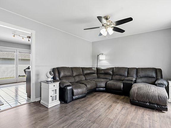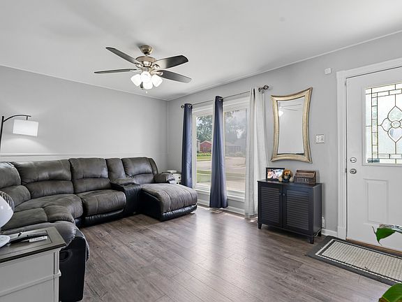 Welcome to one of the best values in booming Romeoville. This charming 4-bedroom, 1-bath home is ready to meet it's next owner. This well cared home boast recent updates such as fresh paint throughout, sleek vinyl flooring, new closet doors, landscaping and an updated bath. In addition to those improvements the HVAC systems and water heater are newer for that much needed peace of mind. The spacious eat-in kitchen features sleek espresso oak cabinets, ceramic tile flooring, and stainless steel appliances. Just off the kitchen is the laundry room and additional room for storage. There is direct access to the large 20 x 12 concrete patio, perfect for summer BBQ's and entertaining. The primary bedroom is generously sized, featuring a custom Ikea wardrobe armoire with enough room for the whole family. The additional 3 bedrooms boast great space and plenty of room in the closets. The living room features newer vinyl flooring that matches the rest of the bedrooms. The bathroom is updated with a modern vanity, and ceiling fans are installed throughout the home for added comfort. Located on a large corner lot with one of the biggest 2.5-car detached garage (23 x 28) that has an attached storage room and a pull-down attic for extra storage space. The concrete driveway offers additional parking. Situated in a prime location close to shopping, restaurants, parks, and within walking distance to schools. The Metra station and expressways are also nearby, making commuting easy. Don't miss the chance to make this fantastic home yours!