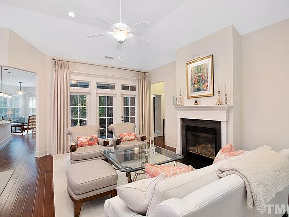 Stunning one level living (plus bonus up) in one of the Triangles most desirable 55+ communities. Conveniently located near Meadowmont with easy access to UNC and I-40, the home features numerous amenities including white cabinets, granite counters, quality composite flooring, 10-ft. ceilings, abundant natural light, and the floorplan is uniquely configured to allow the secondary bedrooms to serve as a guest or in-law private suite. Kitchen open to Dn, Liv & Breakfast Rooms. Home is immaculate!