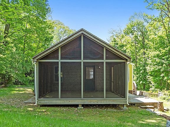 OFFER DEADLINE 7/25 at 5PM. Contemporary Ranch set on a private wooded lot with screened porch, fire pit and gardening area. Your own private oasis in the woods. Open floor plan with skylights, picture windows, cathedral ceiling, recently updated kitchen with breakfast bar. Living room opens to beautiful screened porch with skylights- additional living space in the warm weather. Hardwood flooring throughout. 2 bedrooms overlook quiet backyard and continue the peaceful ambiance of this home. Full basement with laundry and garage access. Perfect commuter location and ready for immediate occupancy. Many windows throughout the home have been replaced. Private showings only.