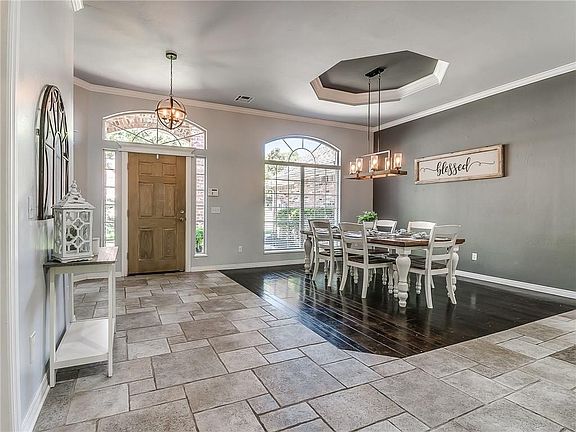 RARE gem nestled in the community of Huntwick! Two living + Two Dining + True Study + 4 beds + 3 full baths + 1 half bath + 3 car garage with in ground storm shelter! WOW! Backs to greenbelt with easements so NO neighbors behind you! Interior boasts tall ceilings, crown molding, & fresh paint throughout. Entertainer's kitchen has corian counter tops, convection microwave, breakfast bar + dining space. Living room features incredible barreled ceiling. 2nd living area centered by gorgeous gas fireplace. Wood floors in both living rooms & formal dining. Split floor plan with private master retreat with gas fireplace, brand new vinyl floors, access to backyard, room for sitting area & a spa-like bathroom with double sinks, sit down vanity, whirlpool tub, & glass encased shower. Additional features include sprinkler system, 40 yr shingle roof, security with cameras, central vac & built-in storage throughout. Shaded by mature trees, the backyard & covered porch are perfect for relaxing!