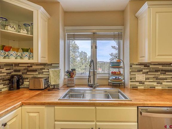 This meticulously crafted home boasts a thoughtful layout with a bedroom on each level, ensuring both privacy and comfort for all occupants. As you step inside, you are greeted by an inviting open floor plan that is seamlessly connects the living, dining, and kitchen area. The kitchen has been tastefully remodeled with sleek stainless steel appliances, giving you a functional space for culinary adventures. Venture outside on the upper deck which is adorned with charming string lights, creating an enchanting atmosphere for post dinner conversations. Downstair in the walk out basement you will find a spacious great room, ideal for movie night or casual entertaining. Step outside and follow the gravel path through the tranquil surroundings, where lush trees and flowers provide a sense of tranquility and peace of mind. Whether you’re seeking solitude or a place to gather with friends, you’ll find your happy place. Love to Golf? Just down the street is the Pagosa Springs Public Golf Club-with 27 holes and views from every direction. After a long day of golf enjoy a nice BBQ lunch on the oversize new deck and enjoy the San Juan Mountain views from the Square Top Restaurant.
