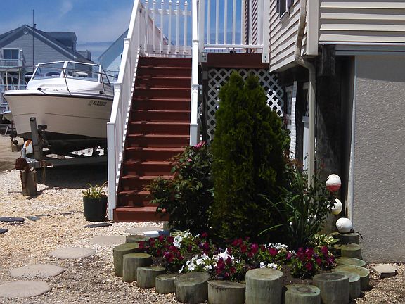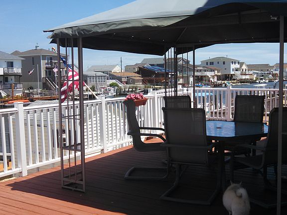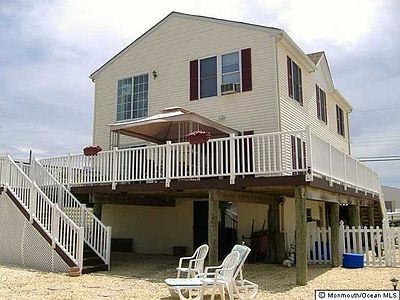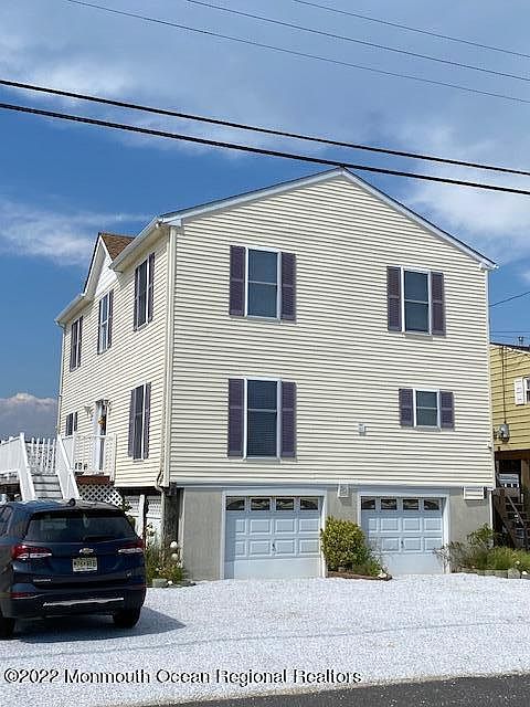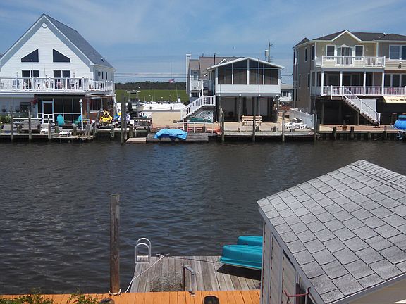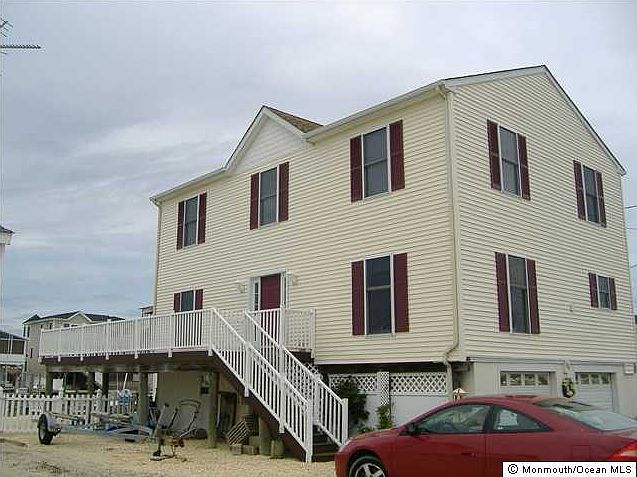 This gorgeous contemporary waterfront 3 story home is all too perfect and too good to be true at this amazing price! There is an exceptional view from every room in this palace. There are 3 large bedrooms, balcony and 2.5 baths. Both living rooms are nestled by a huge deck that wraps around most of the home and creates a warm and cozy comfort zone. The master bedroom is a dream with its whirlpool tub, private suite sitting room, 2 walk in closets and glass sliders for that vacation away from home feeling. For the man of the house, there is a two car garage, storage shed and a partially finished above ground basement with a carpenters work shop. Built on pilings in 2002 and flood insurance is less than $500.00 for current owner. The sliding glass doors from the work shop leads to the dock which is perfect for any size boat. This lagoon has a sandy bottom in Tuckerton beach and is perfect for swimming right off your dock!