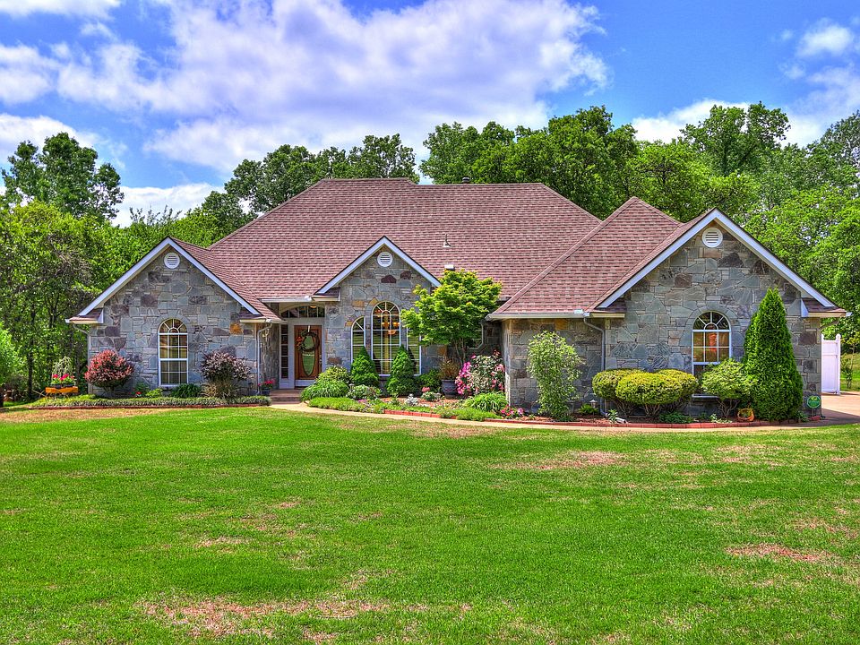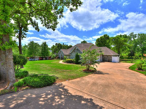 Welcome to the beautiful neighborhood! This home sits on 1 acre of land with gentle rolling landscape. You will enjoy the beautiful crown molding through-out the home. Open kitchen design with granite counters, with breakfast bar that can seat 4. The living area has gorgeous wood floors and high ceilings. Master suite is warm and inviting with hexagon shaped tray ceiling with ceiling fan. The master bath has large jetted tub, double vanity, and large walk-in closet. This split floor plan will provide ample space for family and guests to visit. The back yard is inviting with large old growth trees to provide shade in the late afternoon for that perfect summer BBQ party. The storm shelter is just outside the back door and holds 6-8 adults. There are two dining areas, one just off the kitchen for more intimate dining, and one formal dining area just off the main entrance. This is a must see today, don't miss this one!