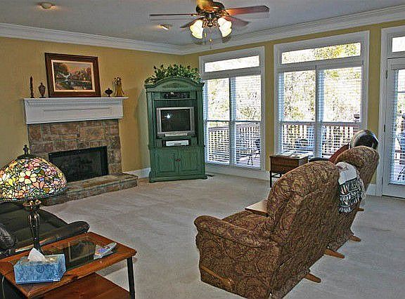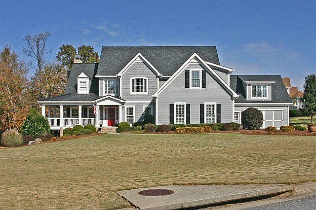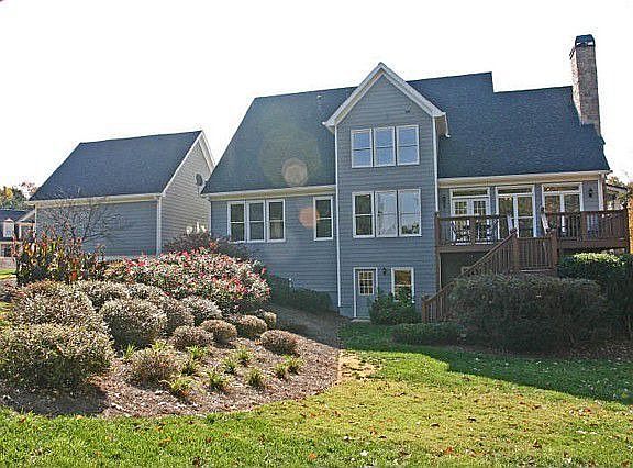 Outstanding 4BR/4.5BA w/wrap porch on 1 acres - deck views grassy lawn mature hardwoods! Excellent 4 car carriage-style garage - 2 attached 2 detached! Kitchen w/warm stained cabinets, granite counters, tile backsplash, angled eating bar breakfast area! Huge family room with stone fireplace wall of transom windows! Transom front door opens into hardwood foyer w/wainscoting; Dining rm w/wainscoting, hardwood floors buffet niche; Transom French doors to formal living room! Main level vaulted master bedrm offers tile whirlpool bath! Huge bonus room!