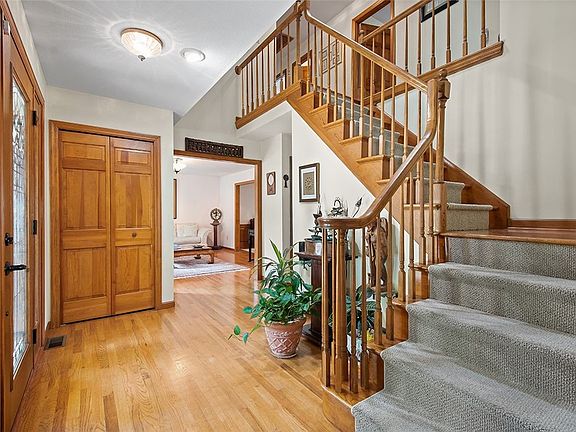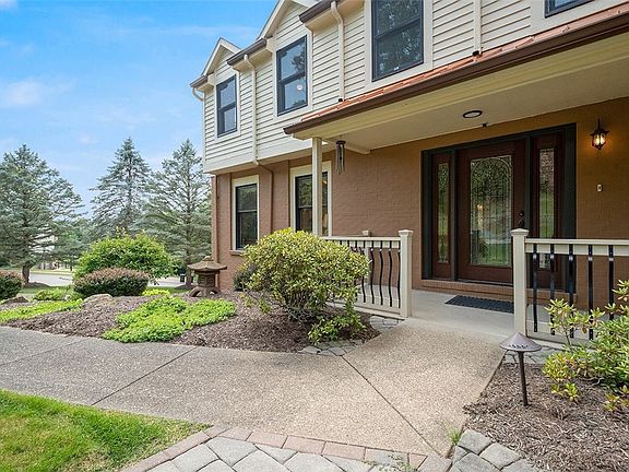 Meticulous home in the desirable Country Manor. The welcoming foyer greets with an elegant staircase & luxurious hardwood flooring that flows throughout the main level. On the right, the family room offers a gas fireplace, built-ins, & a wet bar. To the left sits the living room that leads back to the dining room, highlighted by wainscoting & dentil crown molding. The peaceful sunroom is in the rear. The dine-in kitchen provides ample storage, quartz counters, SS appliances, access to the deck, & a hallway to the laundry & powder rooms. A leaded glass door exits to the low-maintenance deck. The upstairs consists of a primary suite highlighted by a sitting area w/a Palladian window, partially vaulted ceiling, large walk-in closet, & a spa-worthy en suite w/a double-bowl vanity, jetted tub, & an oversized shower. Three add'l. BR's & a full bath complete the upper level. The walkout finished game room has a 5th BR, wet bar, full bath & exercise room or private office through the garage.