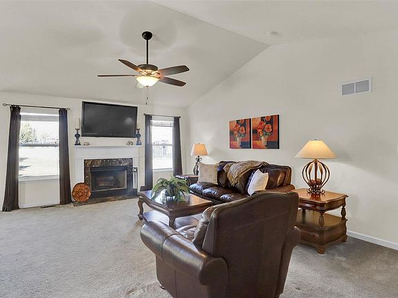 If you are ready to make a house your home, this beautiful ranch is just waiting for your finishing touches. Large, cheery entryway greets you and opens to 2 nice-sized bedrooms with large closets and convenient Laundry room. The kitchen is a functional balance of beauty & convenience: 42” cabinets, center island, 5 burner gas stove and pantry. The dining area conveniently off of the kitchen has a sliding glass door that opens to concrete patio and large corner yard. Main living area has vaulted ceilings, neutral paint and is highlighted by the wood burning fireplace. Retire the day in a large master suite with walk in closet, double bowl vanity, and separate shower. The unfinished lower level has an egress window and is roughed in to enhance your future expansion This home is in sought after Wyndgate subdivision and is priced right for instant equity. Make your appointment today. AGENT OWNED