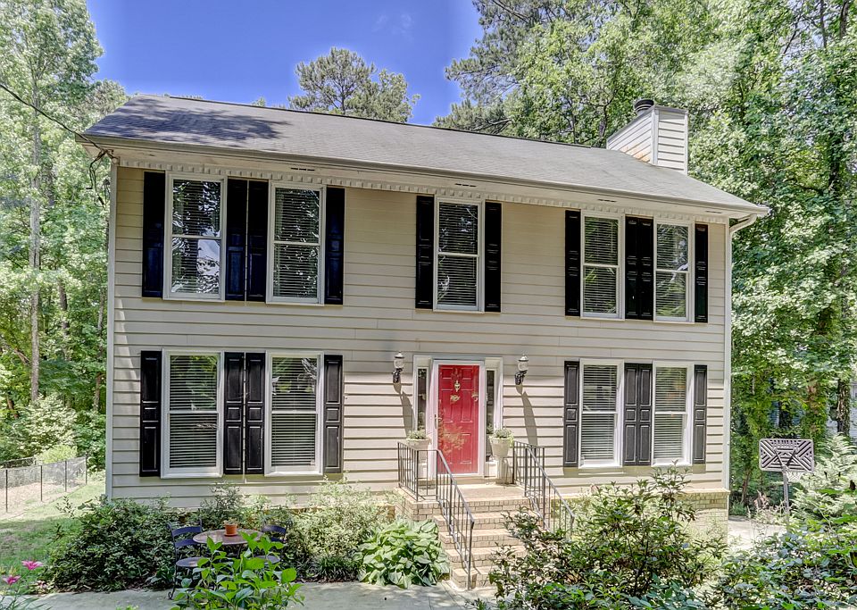 Lovely home nestled behind a canopy of trees w plenty of room inside & out to relax & entertain family & guests! Large lot, newer driveway w lots of parking space. Beautiful interior decor, hardwood floors, open living area w lots of windows welcoming natural light. Cozy family room w fireplace. Updated kitchen w stainless steel appliances. Master bedroom w updated spa bathroom & tile shower, walk-in closet. Terrace level with flex space for office, media room, kitchenette, full bathroom, and door to driveway & yard. Approx lot size 1/2 acre. Great East Cobb schools.