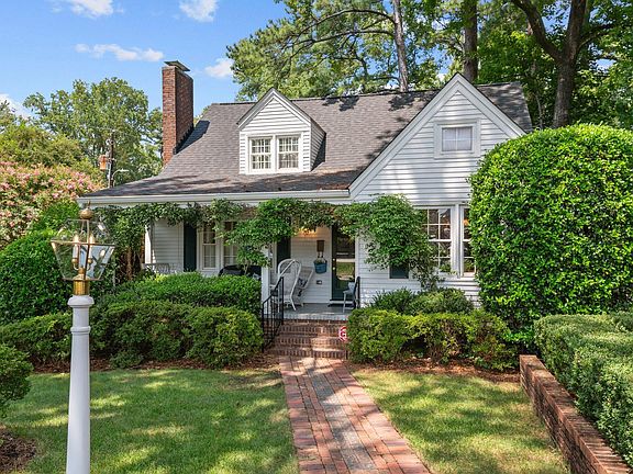 Discover this enchanting 3 bedroom, 2 bath classic cottage, a true standout in the heart of Five Points. Nestled among tall pines, this home exudes charm both inside and out, making it a showstopper in the neighborhood. Step inside to find a blend of timeless architectural features and modern conveniences, including abundant closets, built-in bookcases, and storage galore. Relax by the fireplace, enjoy the front porch adorned in a beautiful privacy vine, dine with friends in the gorgeous dining room, or simply nest into your new home. The inviting sunroom, bathed in natural light, leads you through French doors to a hidden paradise—a secret garden that channels the serene vibes of Charleston and Savannah. Here, you'll find a beautifully crafted brick raised patio with custom iron railing, ideal for sipping your morning coffee while overlooking a lush, vibrant landscape. The perfect place for enjoying breakfast in the morning sun or hosting elegant evening dinners under the stars. This garden oasis is complete with delightful touches such as a classic white picket fence, a charming rose arbor, and an English-style flowing fountain, complemented by a tranquil pond for Koi. The second floor will surprise you with the lovely primary bedroom retreat and bath. The third bedroom, now an art studio offers endless possibilities. Unwinding in your storybook dream home, where every corner tells a tale, and every moment invites you to pause and enjoy life's simple pleasures. Your new captivating cottage, offers abundant charm and modern comfort, where yesteryear and today converge in a stunning Five Points location!