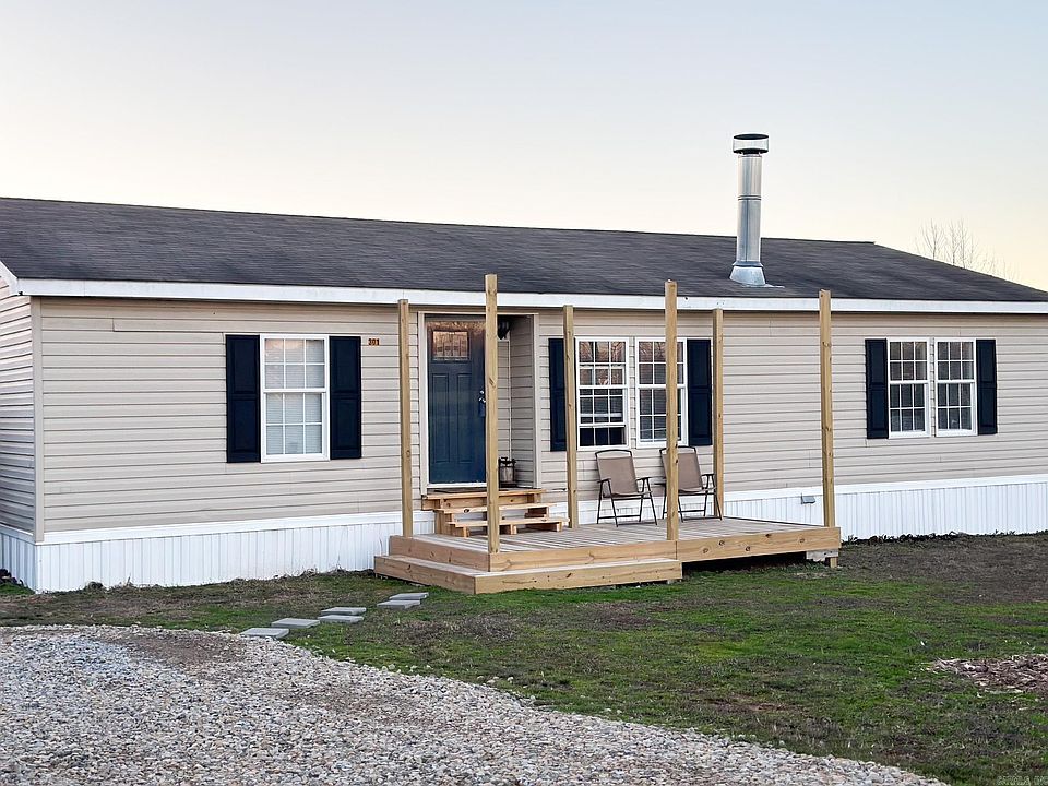 This rural property is an ideal choice for individuals seeking a peaceful lifestyle away from the hustle and bustle of town living, complete with ample acreage. The house has undergone a comprehensive renovation, with new vinyl flooring installed throughout, along with a fresh coat of paint adorning every room. The kitchen boasts brand-new cabinets and countertops, offering a modern and functional space for culinary endeavors. Notably, the cabinets remain unpainted, presenting an exciting opportunity for the new owner to personalize the space to their liking. Furthermore, the property features new exterior and interior doors, enhancing both aesthetics and security. Outside, the front porch has been beautifully reconstructed, while new underpinning surrounds the entire house. Although there are some unfinished projects within the home, this presents an excellent prospect for those interested in a fixer-upper property. Sold in its current condition, this house invites potential buyers to envision the possibilities and make it their own. Don't miss the chance to explore this charming rural abode today!