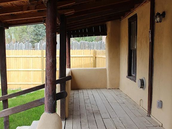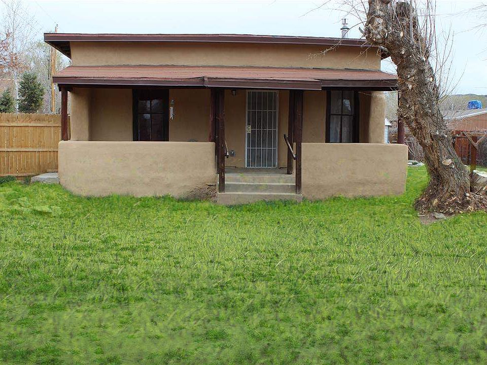 Own a piece of Taos History! Authentic adobe built in 1922 by the family of Josefa Jaramillo, wife of famed frontiersman, Kit Carson. This 2 bed/1 bath territorial homestead is located just off Kit Carson Rd, blocks from the Plaza, restaurants, shopping and galleries. Great location next to the upscale El Monte Sagrado Resort and Pueblos de los Suenos Condos, is on town utilities and has a large lawn and a small storage unit. Sit on the covered front portal and enjoy the beautiful evenings to come or in the sweet sunroom addition on the back. Enjoy canning? Grow your own vegetables on this fenced 0.21 acre lot and then store them in your very own root cellar!