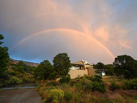 Exquisitely recently renovated and absolutely stunning Sandia Heights offers sophisticated blend of warm, contemporary, and Southwest touches. Beautiful hickory wood floors throughout, and gorgeous wood beam ceilings. Graceful, gentle staircase and custom steel railings lead you to the upper area with beautiful views of the Sandia Mountain and the city. Large windows, decks at both the east and west sides of the house bring the outdoors in. Quartz counters in kitchen with custom cherry hardwood cabinets, Wolf gas cooktop. Two bedrooms on main level and a room that could be used as an office offering views of downtown and the city lights. Spacious yet warm owner's suite on lower level. Home exudes elegance - it is a pleasure to see