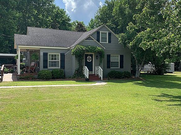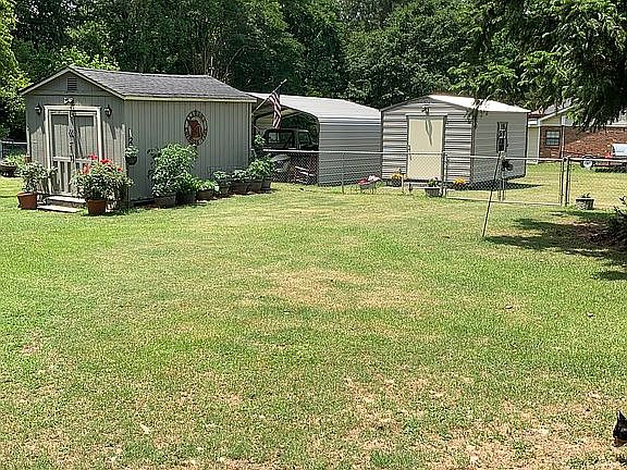 Two story with 1 bedroom 1 bath and office upstairs. 2 bedrooms 1 bath downstairs. Kitchen with dishwasher, stove, refrigerator, garbage disposal. Dining room, living room, den/great room with two ceiling fans, laundry room. Covered patio with ceiling fan. Attached carport. one utility house wired and separate carport with closed sides also wired. Fenced back yard. Privacy fence. Three driveways. Sprinkler system.
