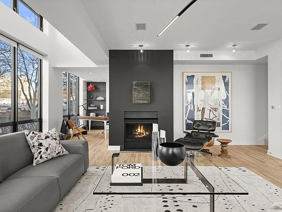 Spectacular Modern Condo in Michael Landers' 2002 built masterpiece on Kenwood Parkway overlooking the internationally renowned Minneapolis Sculpture Garden. This two-story townhome combines the ease of condo living with a private residential feel as the front door opens to your expansive patio and landscaped courtyard. Newly redesigned with 2,870 square feet, the home features 2 bedrooms, 3 bathrooms, a separate light-filled home office, a stunning light-filled great room with gas fireplace, a central dining room leading to the gourmet kitchen with Sub-Zero and Miele appliances and open family room. An upper-level loft showcases incredible views of the downtown skyline while preserving privacy as a relaxing lounge environment. The primary suite is a sanctuary with multiple custom closets and a spa-like bathroom. Second bedroom with ensuite bath and walk-in closet. Direct access to 2 dedicated parking spaces and separate private storage room. A truly special home in Lowry Hill.